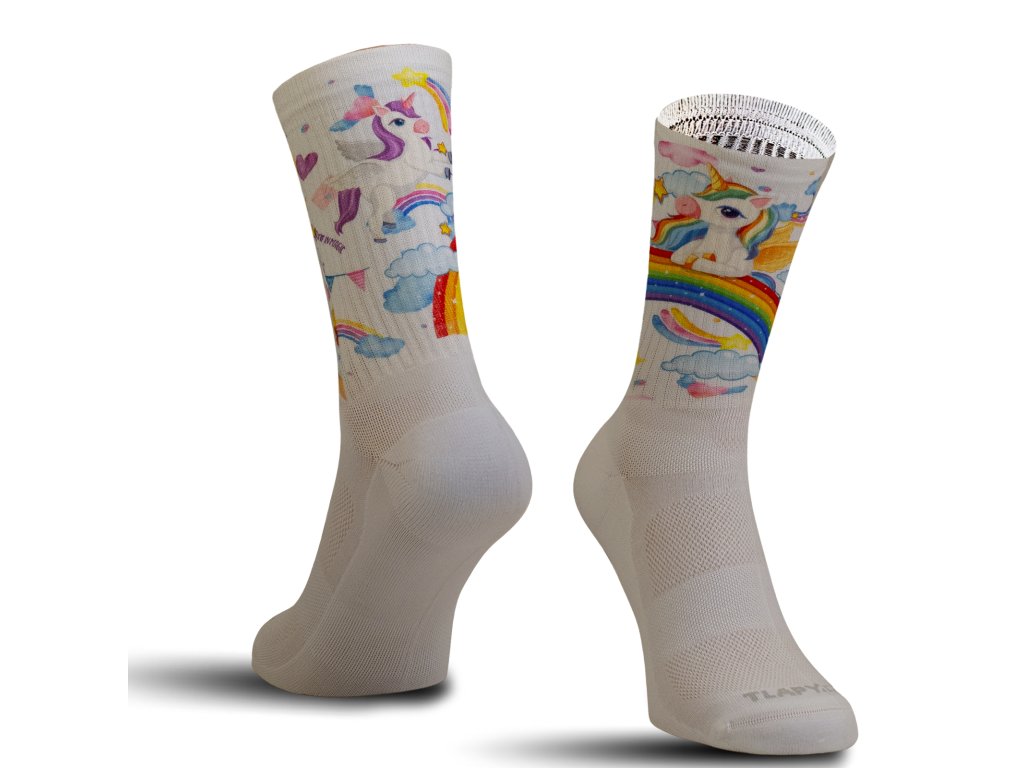 Ponožky s bílým chodidlem, motiv jednorožci s duhou